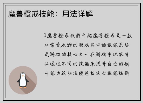 魔兽如何关闭自带技能触发 1. 什么是自带技能触发 自带技能触发是指在魔兽世界中,玩家角色所拥有的技能在特定条件下自动触发的行为。这些技能通常是被动技能或者有一定冷却时间的主动技能,可以为玩家提供额外的战斗能力或者其他增益效果。有时玩家可能希望关闭某些自带技能触发,以便更好地控制角色的行动。下面将介...